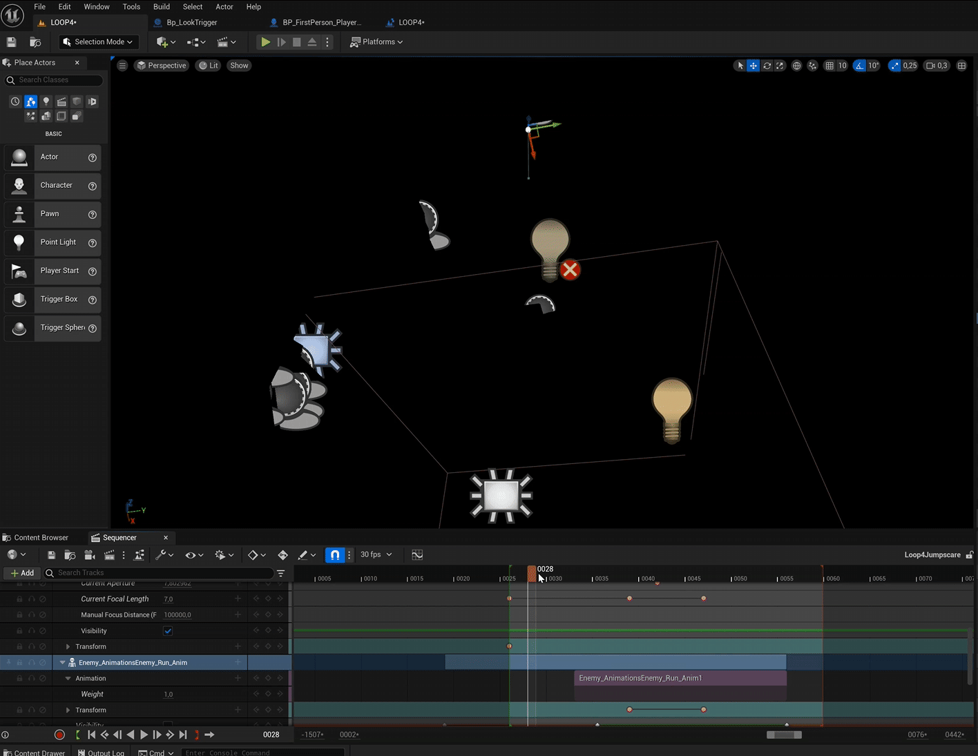 Third-person encounter prototype where enemies react dynamically to light. Built on top of Epic's Game Animation Sample Project (GASP), using its movement and animation system, with fully custom gameplay logic.The main enemy can spawn weaker copies and stays invincible until the main objective is completed.Main Objective: Restore Power in Metro