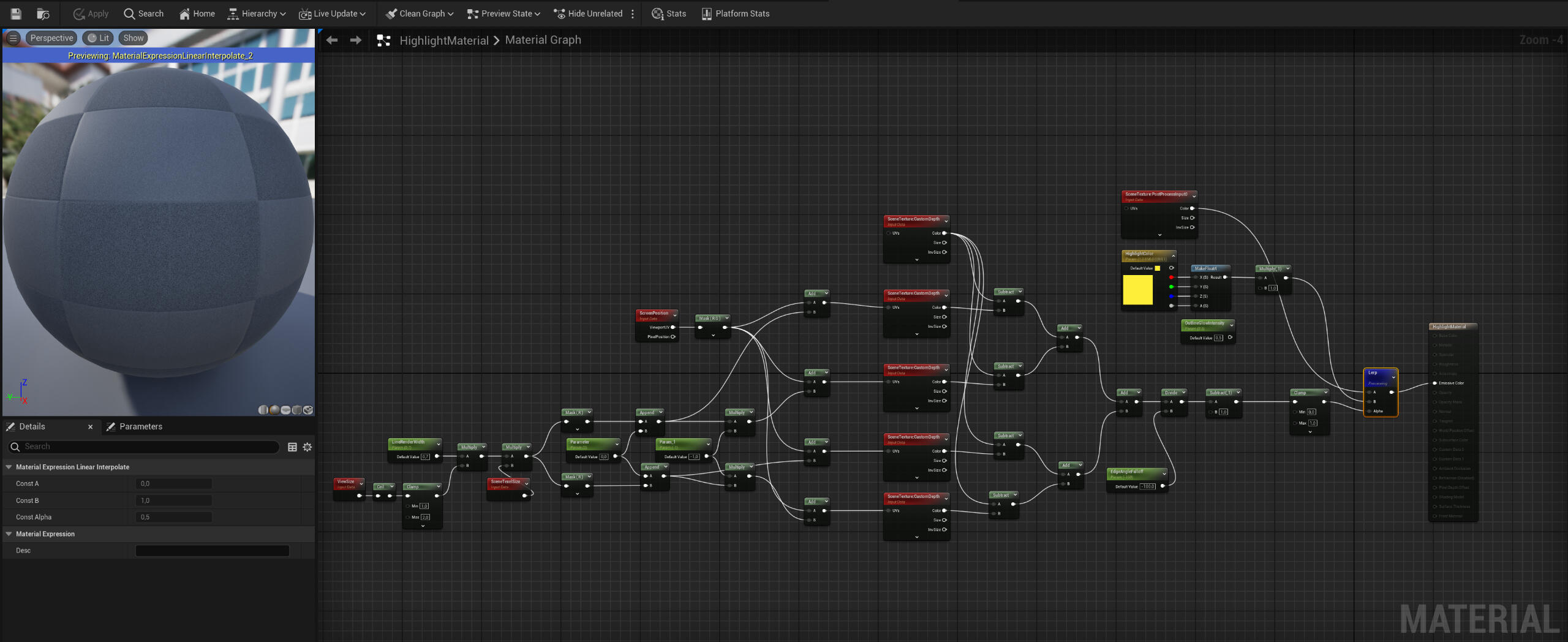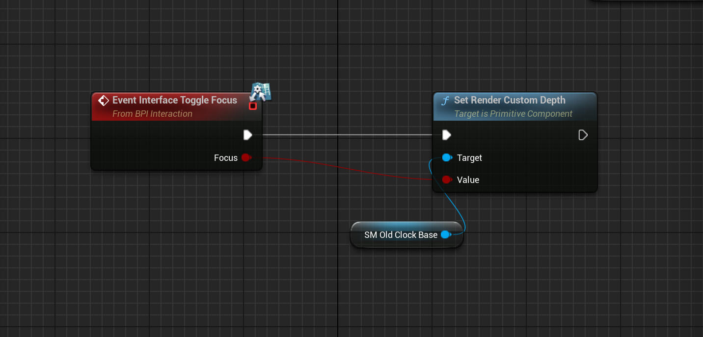For this purpose, I created an Actor Component that stores information about whether the selected object is highlightable.The entire system also includes a post-processing material located within a Post Process Volume inside the level, which highlights the boundaries of objects that implement the specified interface.Within the Highlightable actor, there is an event that sets the render custom depth of the selected meshes when the player hovers the cursor over a specific actor.