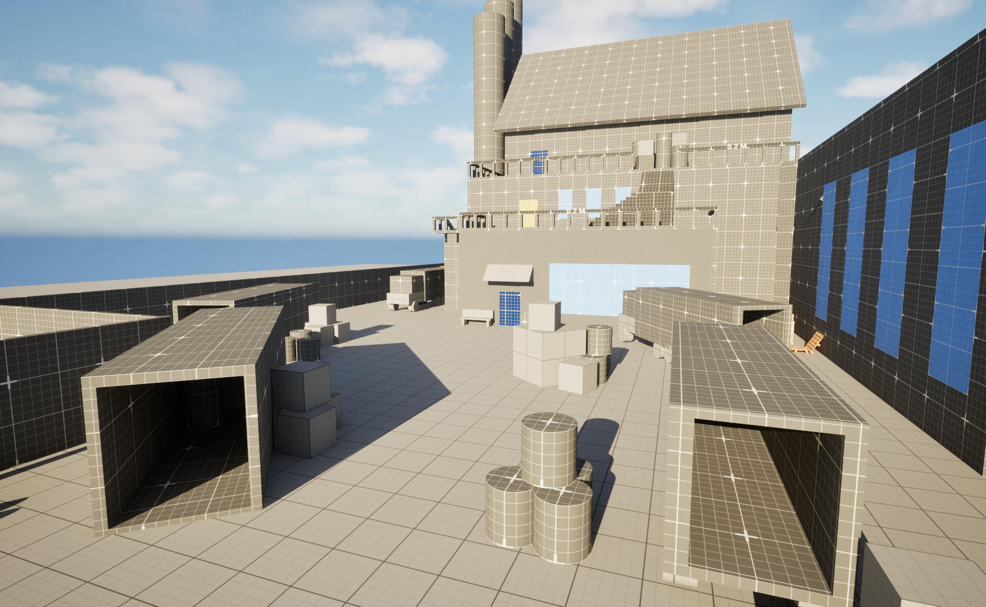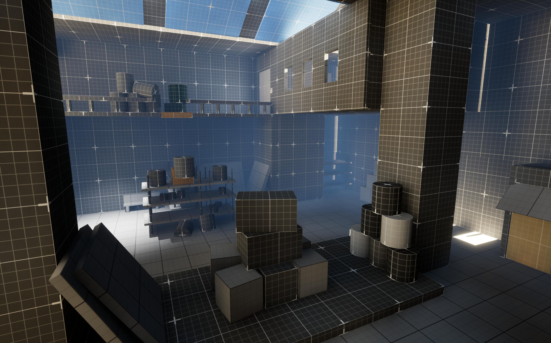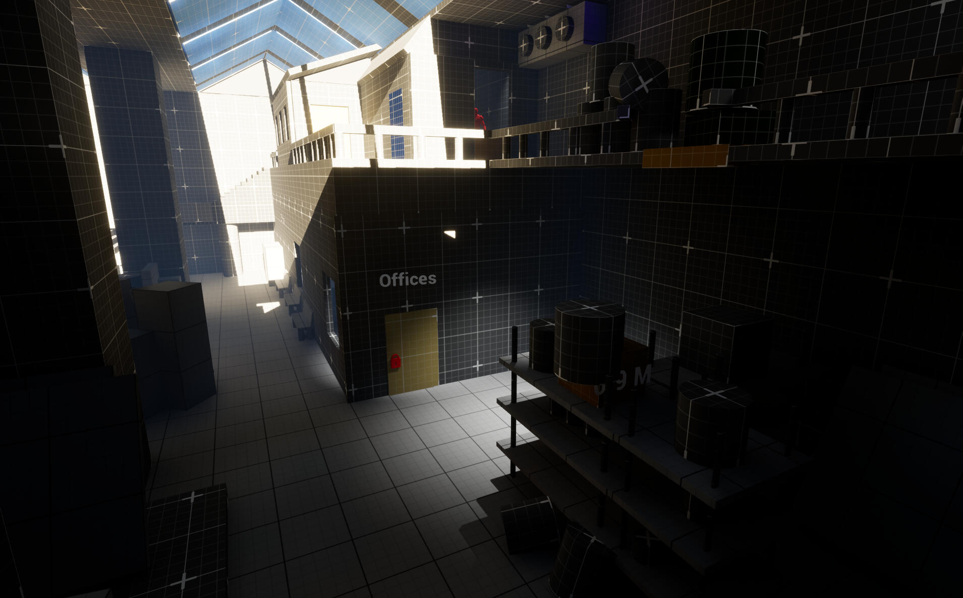 The level was designed as functional factory setting with multiple entry points either opening Factory Main Gate or finding alternative hidden entrance. It is up to the player to decide which way to choose to get inside.Factory interior was created with a focus on backtracking and moving between sections.