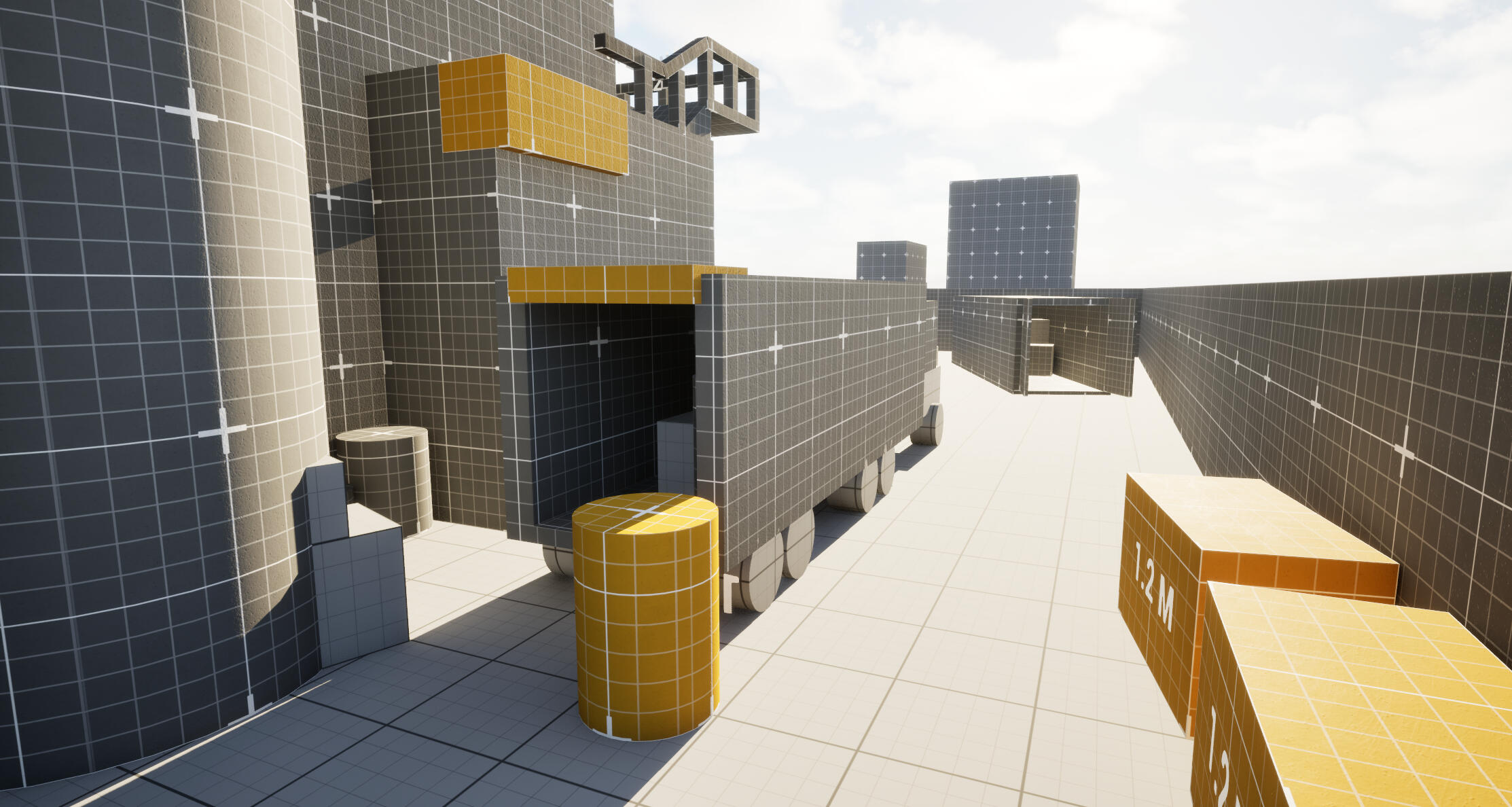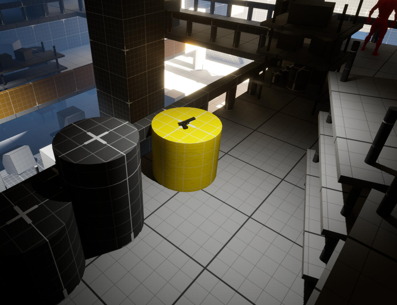 Enemy projectiles use the same Actor class as the Bomb utilized in the Rocket Jump mechanics.When the player enters the pawn sensing radius, the enemy turns toward the player's last known location, spawns a bomb, and fires it.